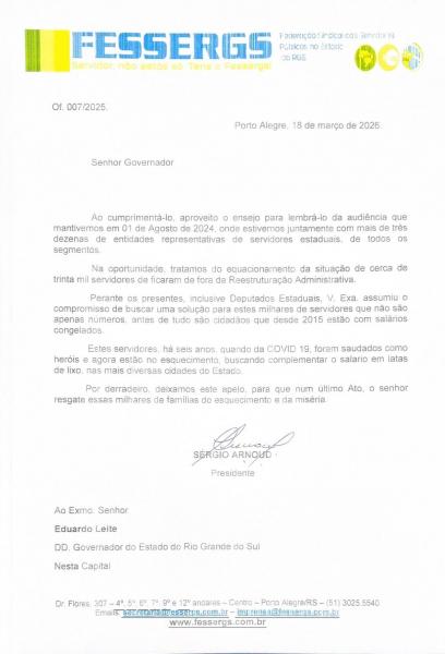 Reunião dia 31-10-2023 com o Chefe da Casa Civil, Artur Lemos e o Secretário Adjunto Gustavo Paim, em que foi entregue o Ofício nº 009/2023, contendo a seguinte pauta: 1- Reposição imediata das perdas salariais correspondentes a 12,36% (o mesmo concedido aos outros poderes); 2- Plano de cargos e salários compatível com as novas atribuições do IPE Prev e IPE Saúde; 3- Aprimorar as condições de trabalho/atendimento aos servidores e beneficiários do interior e da capital; 4- Tornar o PL 467/2023 (que trata do Auxilio-refeição) um projeto que assegure aos servidores ativos e inativos do IPE Prev e IPE Saúde a continuidade dos termos da Lei nº 11.802/2002; 5- Concurso para suprimir a defasagem do quadro de pessoal das duas Autarquias. Fotos